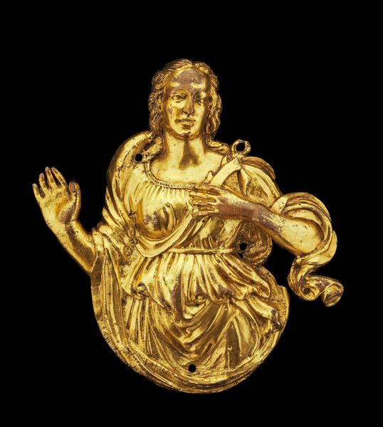 Francesco Marti’s gilded bronze relief presents Saint John the Evangelist in dynamic form, likely created in the early 16th century. The relief is striking for its texture and high contrast, achieved through intricate detailing and the reflective quality of the gold. Note how Marti uses dramatic undercutting and varied depths to create shadows that accentuate the saint's rapturous expression and the flowing lines of his drapery. The upward gaze and slightly open mouth evoke a sense of divine inspiration, capturing the saint in a moment of ecstatic revelation. The structure of the composition, cut off mid-torso, focuses attention on the face and hands. This artistic choice invites contemplation on the role of the individual as a vessel for spiritual insight. Consider how the formal elements—the play of light, the expressive lines, and the carefully modeled surface—together convey a sense of spiritual intensity and the transformative power of religious experience. The work transcends mere representation, inviting viewers to engage with the emotional and spiritual dimensions of faith.