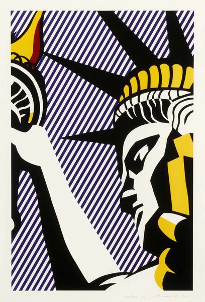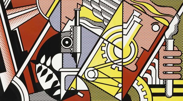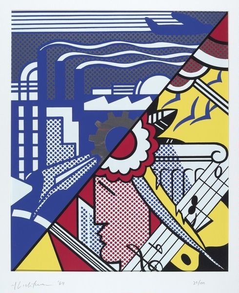 Roy Lichtenstein made this ‘Salute to Aviation’ screenprint using commercial printing techniques. Here, the artist embraced a mechanized aesthetic, intentionally mimicking the Ben-Day dots of newspaper and comic strip printing. This was decidedly not the stuff of traditional "fine art" at the time. The image is built up from solid planes of primary color, sharply delineated. Note the way that texture is conveyed, not through painterly gesture, but through the careful, uniform application of the dot matrix. In this print, Lichtenstein draws upon a visual language of mass production, nodding to the rising tide of consumer culture. It's interesting to consider the amount of skilled labor that actually went into producing what seems like a very impersonal image. This underscores the sly brilliance of Lichtenstein's Pop project. It asks us to reconsider what we value in art, and how the social and economic context of production shapes our understanding of creative work.