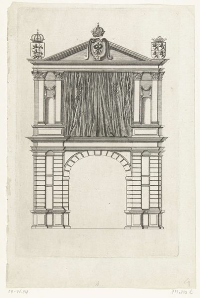 Pieter Nolpe etched this theater gate in 1642. At the top, notice Atlas, burdened by the globe, a symbol of cosmic order. This echoes antique sculptures, like the Farnese Atlas, yet it is transformed. The weight of the world, once a divine burden, now rests on human shoulders, a Renaissance motif of humanist ambition, as if humanity could master the heavens. But what does it signify here, in Amsterdam? This motif, the weight, reappears in countless guises— in the stoic philosopher bearing his fate, in the worker bowed by labor, in the parent burdened by care. The gate, flanked by heraldic shields and draped with a theatrical curtain, suggests something is to be revealed. This act of unveiling has psychological weight. We are invited to witness, to participate in a drama of civic pride.