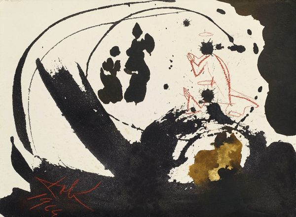 Editor: Here we have "Mother's Love" by Kaoru Kawano. The woodblock print uses a limited palette to depict a mother cradling her child. What strikes me is the stark contrast of light and dark. How do you interpret this work? Curator: I'm particularly interested in the woodblock technique itself, a process deeply rooted in craft and labor. Consider the artist's deliberate choices in carving, in the selection of each color. How does the materiality of the print affect its meaning and the way it is consumed? Editor: That’s interesting. I hadn't considered the labor involved so directly. Curator: And notice the social context. Prints were often more accessible than paintings, bringing art to a wider audience. This simple scene becomes part of everyday life. We can see the means of its production as an integral part of the artwork. Editor: I see what you mean. Thank you. Curator: My pleasure.