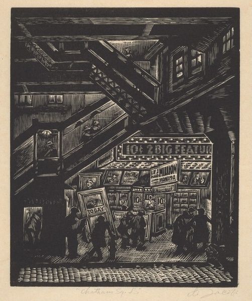 Donald Vogel made this print, Sabotage, in 1925. It depicts a capsized train car spilling its cargo, with onlookers in the foreground, and a factory visible behind. The print was made during a period of labor unrest in the United States, when workers were fighting for better wages and working conditions, and the Industrial Workers of the World union was at its peak. In this context, the image speaks to the fraught relationship between labor and capital. Visually, Vogel emphasizes the harshness of industrial labor. In this period prints were cheap to produce and distribute, and so were often used to spread political messages. To better understand this print, and its social context, we could turn to publications of the era, such as union newspapers and pamphlets. These sources can give us a better understanding of the social and institutional contexts that shaped this artwork.