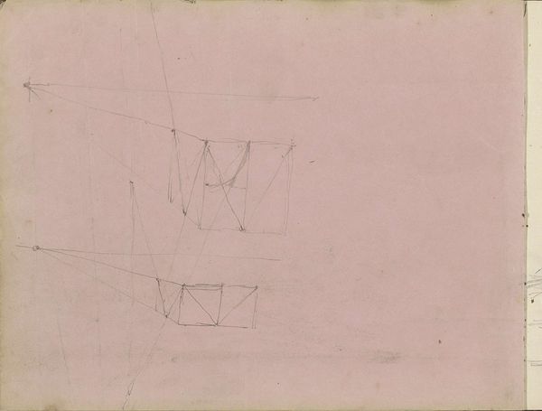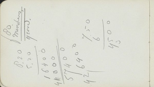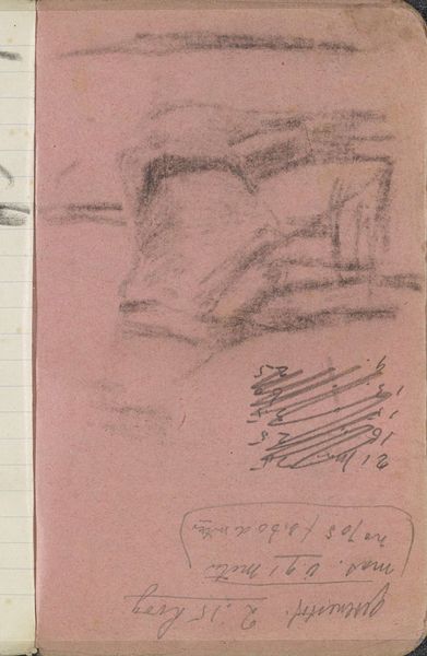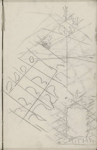 Here at the Rijksmuseum, you’re viewing a sketchbook page by Carel Adolph Lion Cachet. This intriguing study, rendered in red chalk and graphite on paper, presents a stark contrast between artistic expression and calculated precision. On the left, we see a series of hatched lines and rudimentary strokes in red chalk, evoking a sense of texture and form. These marks, free and expressive, hint at the artist's exploration of depth and shadow. Juxtaposed against this organic display, the right side of the page is dominated by precise geometric calculations. These numbers and diagrams, meticulously rendered in graphite, suggest a structured, almost scientific approach to spatial reasoning. The page becomes a fascinating dialogue between art and mathematics, challenging our understanding of creativity and intellect. This interplay destabilizes established meanings, inviting us to consider how structure and form can function not just aesthetically but as a part of a larger cultural and philosophical discourse.