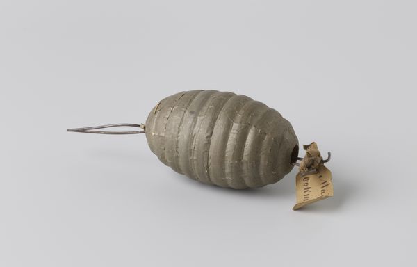 Curator: Well, this curious object is entitled “Ball bij sjako van J.W.C. baron van Ittersum.” It appears to date from around 1800 to 1850. The composition incorporates metal and what appears to be various found objects in a mixed media assemblage. Editor: My first thought is the material feels muted, subdued even. Its textures, almost fragmented, hint at a hidden purpose or past. Curator: It certainly begs inquiry, doesn’t it? To put it in context, these decorative balls, which would have been displayed on the military caps – shakos – were more than mere ornament. They represented social standing and often the patriotic fervor of the wearer during the tumultuous years following the Napoleonic wars. They indicated rank and social class at the time. Editor: I’m interested in that concept of the social and patriotic role these seemingly simple objects played, specifically through this baron's identity and privileges in shaping narratives around war, power, and representation in a rapidly changing Europe. Does it express those nationalistic values, or subtly undermine them? Curator: The materiality, however, raises some questions. It seems intentionally aged, or distressed. The use of these various materials suggests an interest in disrupting typical modes of display and, more widely, institutional frameworks prevalent in artistic expression. Editor: It’s an intriguing contrast, right? Juxtaposing what could be seen as symbols of status and nationalistic pride against the backdrop of potential social commentary. It evokes dialogues around class, military structures, and even perhaps questions inherited privilege through its creation as a somewhat deconstructed object. Curator: Exactly. The artist is taking elements loaded with socio-political significance and prompting us to consider their deeper implications within the era and, perhaps, the ages that would follow. It asks a big question, no? Editor: Absolutely. I see how interrogating power and visual vocabulary is deeply tied to discussions around historical and contemporary class relations and identities, compelling reflection beyond initial aesthetic assessment. Curator: Ultimately, the artwork functions as more than just an emblem from the past. Editor: Instead it’s more of a silent but strong prompt encouraging broader investigations into the complicated interaction of symbols, materials, identity, and culture.