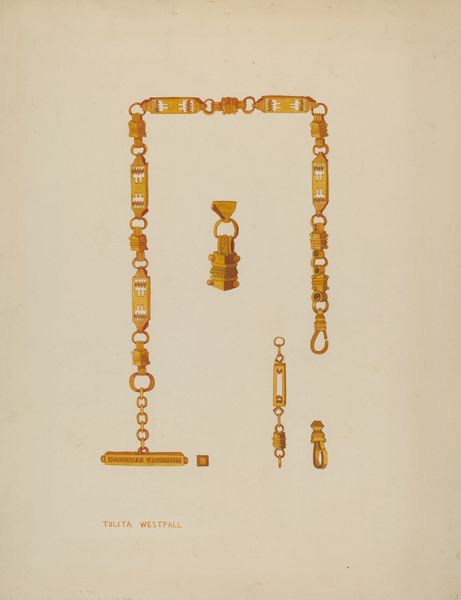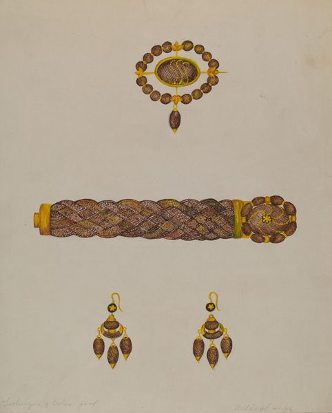 Tulita Westfall made this vibrant painting of earrings and brooches, and what strikes me first is the precision, but not a cold, calculated precision, more like a loving attention to detail. The way the gold shimmers, it's almost as if she's building up the image dot by dot, with layer upon layer. Each small circle is rendered with different strokes that seem to dance around it, with the addition of highlights. See how the paint is meticulously applied, creating a textural richness that makes you want to reach out and touch it. And the color palette is so warm and inviting, with rich gold tones offset by the soft paper. This piece reminds me of the drawings of Hilma af Klint, where the process itself becomes a kind of meditation. There's an ambiguity here, like, is this just a document of some real jewelry, or is it something else, something symbolic or personal? The way that Westfall has approached the project with this intense level of care and attention asks you to reflect on these questions and to contemplate the role of craft and beauty.