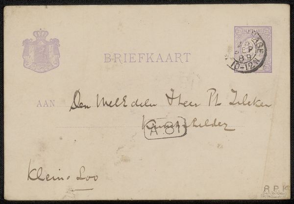 This is a “briefkaart,” or postcard, sent to Philip Zilcken, likely in the late 19th or early 20th century, given the stamp and postmark. What we see here isn’t a precious painting or sculpture, but rather a mundane item of material culture. What might it tell us? Well, consider first the making of the postcard itself. Likely manufactured in a factory setting, the card's surface would have been prepared for printing, the design and text applied through a mechanized process, and then distributed widely for purchase. The handwriting is key, however, because it marks a point of individual intervention in an otherwise standardized system. Note how the sender, one Clene Lov, carefully inscribed their message, connecting with the recipient through the act of personal communication. Even the postmark is important, a record of the card’s passage through a network of exchange. In short, this seemingly modest object speaks volumes about the relationship between mass production and personal expression.