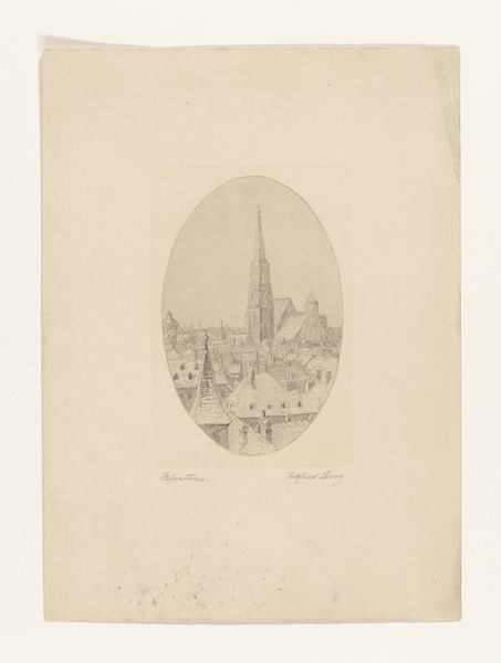 Editor: This is Louis Philibert Debucourt's "View of the Cathedral of Saint-Denis with the Removal of Royal Tombs," an etching and engraving from 1817. The scene feels incredibly desolate, amplified by the architectural lines and stark contrast. How should we approach an interpretation of the print? Curator: A close analysis of its formal qualities is paramount. Note the sharp linearity in the depiction of architectural forms juxtaposed with the softer, more gestural rendering of the sky. This tension creates a dynamic visual experience. Consider how the lines direct the eye and establish spatial relationships within the composition. Does the artist's rendering of the scene evoke any particular meaning? Editor: I am drawn to the contrast you pointed out and wonder what this implies in terms of Debucourt’s perspective or attitude towards what’s happening in the picture. Is it an effort to underscore conflict and change? Curator: Precisely. Note how the receding perspective, while technically adept, emphasizes the scale of destruction. This engraving utilizes line not just to delineate form, but to evoke a sense of unease and, perhaps, loss. Are the formal decisions impacting your personal reading of the picture? Editor: It definitely amplifies that sense of disturbance. The contrast in the sky and the building almost divides the picture, adding a lot of drama to a rather bleak event. Thank you, I am paying more attention now. Curator: Indeed, by analyzing the use of line, light, and composition, we reveal the formal underpinnings through which the artist communicated their perception. Formal analysis gives us an initial insight into the work and how one can develop personal impressions, beyond what the surface initially suggests.
