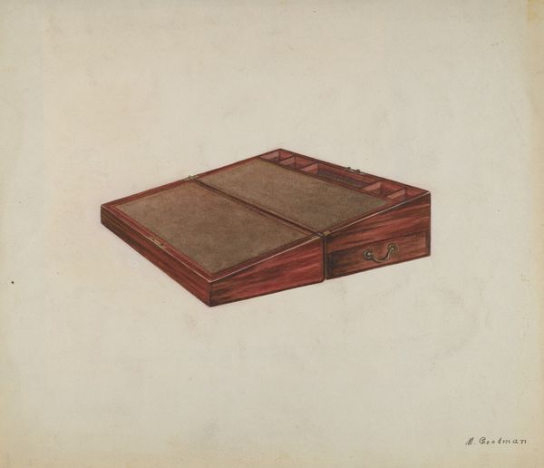 LeRoy Griffith made this watercolor of a Knife Box. This kind of image belongs to a tradition of documentary realism, one that began in the 1930s and 40s, which aimed to record American design. We might ask why such everyday objects came to be seen as worthy of artistic attention. The answer lies in the wider social changes of the time. With industrialization and mass production, handcrafted items became increasingly rare and were seen as emblems of a simpler, more authentic past. Projects like the Index of American Design, with which Griffith was associated, sought to preserve this heritage by documenting and celebrating the ingenuity and skill of American craftspeople. To appreciate this image fully, we might research the social and economic conditions that gave rise to the Arts and Crafts movement, as well as the role of institutions like the Index of American Design in shaping our understanding of art. Art here is contingent on social and institutional context.