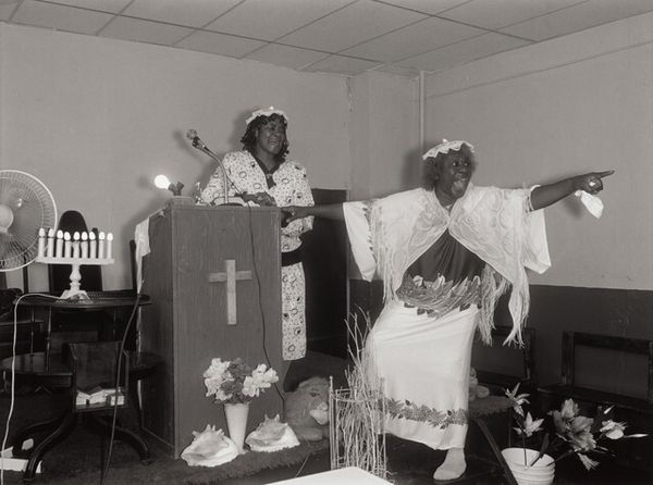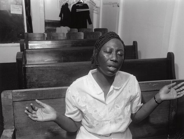 This black and white photograph, by Thomas Roma, presents a group of women, with books, most likely bibles, in what appears to be a church. The making of a photograph like this involves several crucial steps. There is the act of composition: selecting the subject and arranging the elements within the frame. The camera itself—its lens, shutter, and aperture—is a tool of mechanical precision. And then, the film. Roma chose black and white, immediately establishing a sense of sobriety. The image bears the marks of its making through light and shadow. Consider the material reality of the photographic print itself: the texture of the paper, the delicate tonal gradations achieved through the chemical processes of developing and printing. Black and white photography has always carried a documentary weight, implying an unvarnished look at the world. Ultimately, this photograph’s power resides not only in what it depicts, but in the layers of intention and craft that have gone into its making. It’s a reminder that all images are constructed, the result of choices made by the artist, and the affordances - or constraints - of the medium itself.