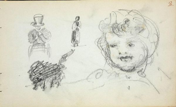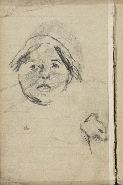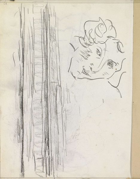 Curator: Otto Verhagen created this intriguing drawing around 1928-1930; its title translates to "Head of a Girl and a Woman Sitting in the Grass." Editor: It’s disarming. The girl's face feels monumental, like a study torn from a larger composition, while the woman below is so diminutive, so completely swallowed by the landscape that I can almost feel the sun on my face in the space between them. Curator: Fascinating. I am intrigued by this artist that rose to prominence amidst social and economic upheaval, but largely worked on representing mundane life, mostly without criticism for the socio-economic reality, maybe he worked in his atelier disconnected to what was happening in society. It invites considerations on the role of the artist. Editor: What strikes me first is the contrasting treatment. Look at the very different types of strokes that he is using. We have very dark lines and the woman which create shadows while other lines, lighter, and more clear for the girl´s face. And this is not because he had better access to this girl! It´s the structure that allows it to exist. Curator: That's a brilliant point. This also speaks to the status the figures would have, both being a member of this community. Does it reinforce social hierarchies, or challenge them? I find myself drawn to thinking on art's responsibilities during the interwar period, and what expectations are set about the artist´s own engagement. Editor: But observe that the formal elements create this status without an overt intention to make any statement on the socio-political sphere. I find myself absorbed by the tonal range Verhagen coaxes from the pencil; it’s unexpectedly sophisticated. Curator: Agreed. And it provokes so many thoughts: how was art consumed, and for whom? Who could even engage with or benefit from representations that focused only on a peaceful atmosphere? It raises questions of agency in that time. Editor: Perhaps, yet I am here only drawn to Verhagen´s rendering skills as is manifest with the figure on the grass and how its form merges and detaches to form this complete work that can provide this space for contemplation. It is just pure mastery on this combination that leads us into thinking what each character entails to the other one and to us as public. Curator: Ultimately, its enigmatic quality makes this drawing very poignant. Editor: Exactly. Its simplicity holds great nuance for any sort of audience and purpose of seeing it.
