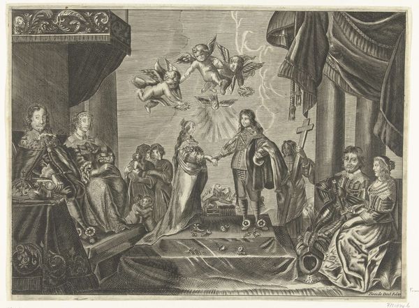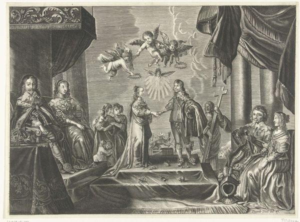 This engraving by Pieter Nolpe immortalizes The Marriage of Henry IV and Marie de Medici. Look closely, and you’ll notice the figures flanking the central couple, each holding shields adorned with potent symbols: the fleur-de-lis for France and the Medici coat of arms. The fleur-de-lis, a stylized lily, transcends mere heraldry. In antiquity, the lily represented purity and was associated with powerful goddesses like Hera, before it was adopted by the French monarchy to evoke divine right and legitimacy. Observe how Nolpe, through this image, links the power of the French crown to enduring symbols of authority and continuity. The scene calls to mind earlier depictions of royal unions, where gestures of alliance and dynastic ambition were paramount. This echoes through centuries, a recurring motif in the theater of power. Symbols, like actors on a stage, reappear, adapted to new dramas, yet forever tethered to their origins. Nolpe’s image is not just a record, but an echo chamber of cultural memory.