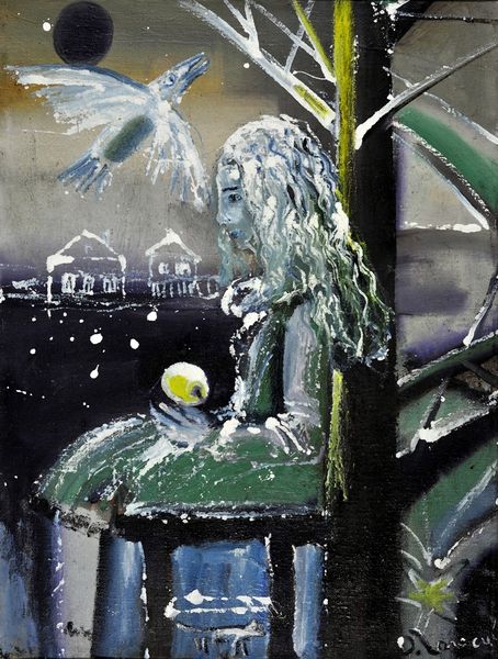 Vasiliy Ryabchenko made this ‘Princess’, at an unknown date, probably with graphite and colored pencil. Ryabchenko's drawing has this ghostly, ethereal quality; it’s like a memory fading or a dream barely grasped. The color palette is subdued, mostly grays, with pops of warmth in the candlelight and the princess's hair, giving the impression of a flickering light in a darkened room. It has this feeling of something just on the edge of visibility, a form emerging from the mist. The drawing is not precise but instead captures a feeling, a mood. Look at the lines scratching and scribbling, barely containing the forms they define. Take the dog statues, for example, how they become a network of tiny marks. It's a process laid bare, revealing the artist's hand in every stroke. Ryabchenko's work reminds me of Odilon Redon's dreamlike symbolism. Both artists share a willingness to embrace ambiguity, creating worlds that invite the viewer to wander and wonder, rather than offering fixed answers. The beauty is in that openness, that invitation to dream along with the artist.