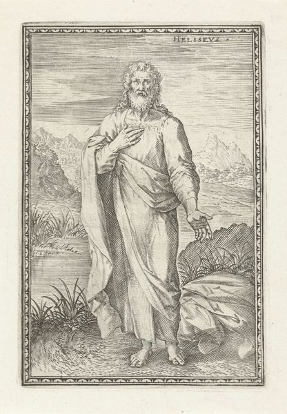 Nicolaes de Bruyn created this engraving of Sankt Judas Taddæus during a period of religious reformation and conflict in Europe. De Bruyn, working in the Netherlands, navigated a world where religious imagery was both a powerful tool for faith and a potential source of controversy. Here, Saint Jude is depicted with his traditional attributes: a club or cross, symbolizing his martyrdom, and a book, representing his faith. De Bruyn’s engraving invites a dialogue about power, belief, and identity. Consider the emotional weight carried by Saint Jude as he gazes towards the heavens, seemingly detached from the turmoil below. The figures in the background, caught between salvation and damnation, embody the spiritual struggles of the time. This image both reinforces traditional religious narratives and subtly questions them by emphasizing the personal, internal experience of faith amidst external chaos.