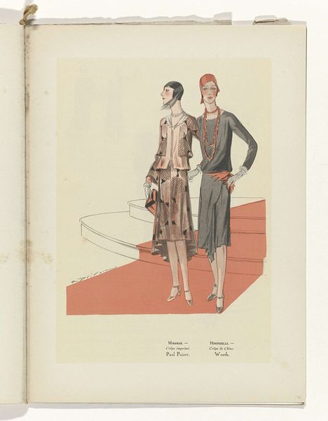This lithograph, titled "Art - Goût - Beauté," was created by R. Drivon and published in November 1928 as part of "Feuillets de l'élégance féminine." It features a composition that brings together three fashionably dressed women. Drivon’s work is characterized by its elegant lines and soft color palette, which immediately draw the viewer into the refined aesthetic of the late 1920s. The lithograph uses a structural arrangement where each figure represents a distinct style, yet they are harmonized through the consistent use of line and form. This formal approach not only showcases fashion, but also plays with the semiotic representation of women's roles and societal expectations. The women are slender and posed, reflecting a cultural fascination with modernity and liberation. Drivon's strategic use of composition and line serves to highlight the artifice of representation itself. These women are not merely models but constructed images, embodiments of the era's ideals, inviting us to reflect on how beauty and taste are mediated and interpreted.