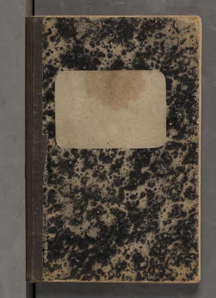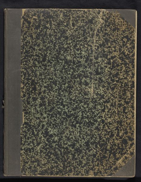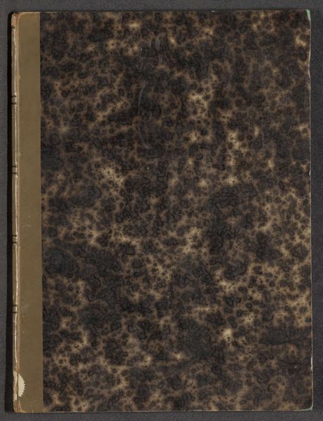 Editor: This is an album attributed to Hubert Quellinus, titled "Album met voorstellingen van beeldhouwwerken in en op het Paleis op de Dam te Amsterdam," dating perhaps from 1655 to 1924. It's comprised of mixed-media on paper and presently housed in the Rijksmuseum. The weathered cover intrigues me with its almost geological texture; what catches your eye about it? Curator: The materiality itself is quite telling. Observe how the aging of the album contributes to its overall aesthetic. The paper's surface and its tonal qualities aren't merely neutral backdrops; rather, they participate actively in the visual composition. The granular texture sets up a visual counterpoint to the anticipated smooth surfaces depicted within. How do you read this interplay? Editor: It's like a visual dialogue between decay and permanence, with the rough texture hinting at the sculptures’ potential for endurance versus the album's own ephemerality. Does the monochromatic nature affect your interpretation? Curator: Precisely! The lack of color encourages an engagement with form, line, and the interplay of light and shadow. Consider the composition--the placement of the aging marks relative to the book’s closure and binding. It subtly highlights the book's function as a container of knowledge, hinting at the concealed beauty it promises to reveal. Editor: That's a wonderful observation. I was so focused on the texture, I almost missed how it emphasizes the book as an object. I see the piece very differently now. Curator: And consider that the binding provides an element of visual structure too, in direct opposition to the "randomness" of the patterns within the front board's aged finish. Together, they create a satisfying contrast and visual harmony. Editor: I hadn’t thought of the binding that way, such a clever touch! Curator: Yes, indeed. Close analysis reveals so much about form, structure, and relationship between design elements of the artwork and its material components.