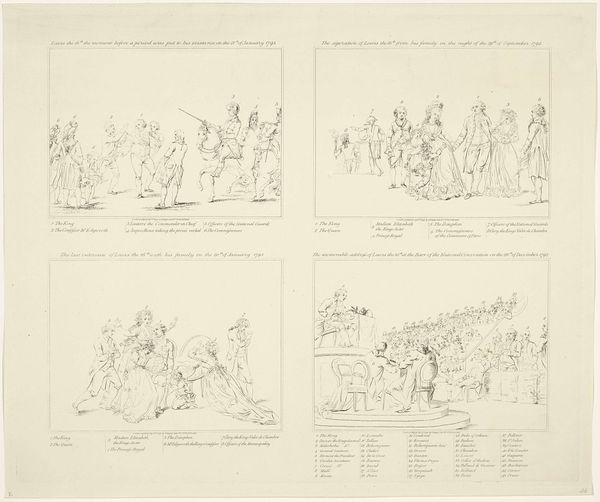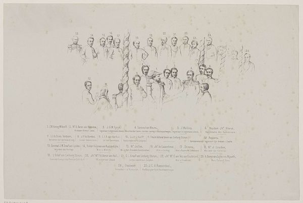 This anonymous drawing depicts a family gathering of Caroline Augusta of Bavaria, Empress of Austria. The composition is arranged in a formal, hierarchical manner, typical of depictions of royal families. The grouping of figures, their poses, and the gazes create a network of relationships and power dynamics. Consider the visual language used here. Group portraits of families appear throughout history, evoking ideas of lineage and dynasty. The stiff, upright posture of the adult members is a symbol of their status, a visual parallel to the heavy robes and crowns they wear in other contexts. Compare this with the Arnolfini Portrait by Jan van Eyck, where similar gestures are used to convey social standing and wealth. There is an enduring quality to this symbolic language. These motifs resurface repeatedly, passed down through history, often shifting in meaning, yet retaining a connection to their origins. This drawing becomes more than just a family portrait, it's a testament to the cyclical nature of symbols and their power to shape our understanding of history.