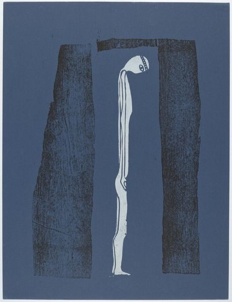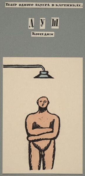 Curator: Welcome. Here we have Ilya Kabakov’s drawing, titled "Set," from around 1970. It’s a rather simple piece, consisting of lines depicting a figure standing under a showerhead. Editor: Simple, yes, but striking! I immediately get a sense of isolation. The starkness of the lines and the pale background give it a clinical feel, almost sterile. Is this person being cleansed, or are they simply trapped? Curator: That tension between cleansing and entrapment is really central to much of Kabakov’s work. The shower is interesting because, in Soviet apartment blocks, communal bathing experiences lacked privacy. The individual in this drawing seems very exposed. Showers themselves are symbols of purification and sometimes, shame. Consider the famous shower scene in Psycho. It echoes throughout our cultural consciousness. Editor: You're right. It feels heavy, and even though there's no face, it's incredibly vulnerable. And I find the deliberate lack of detail intriguing, too. The figure is generic. The scene is devoid of background noise, the specificities of character and identity. It becomes about an anonymous experience, a universal predicament, even. What are they setting the stage for in this setting? Curator: That anonymity really resonates with the conceptualist leanings in Kabakov’s art. Many people felt anonymized and alienated by the structures of power and collective living, though most state narratives at the time tried to conceal it. By stripping the figure of individual characteristics, Kabakov amplifies the symbol’s emotional impact. Editor: It's quite unnerving once you dig beneath that surface. The bare bones drawing speaks to bigger anxieties. Is it also fair to interpret a commentary on the human condition, about being washed away, made indistinct by time? Curator: Yes. The enduring themes of humanity as washed away from history, our purpose and place, were common motifs in philosophy. This is particularly true in Soviet and post-Soviet experience where individual stories are overshadowed or forgotten. Editor: I am struck by the sheer poetry with which he gets this existential meditation across, in its simplicity. Curator: Well, "Set" prompts reflection on what we keep from those experiences— and how we emerge. Editor: Precisely, offering a unique point of contemplation in the artist's visual vocabulary.