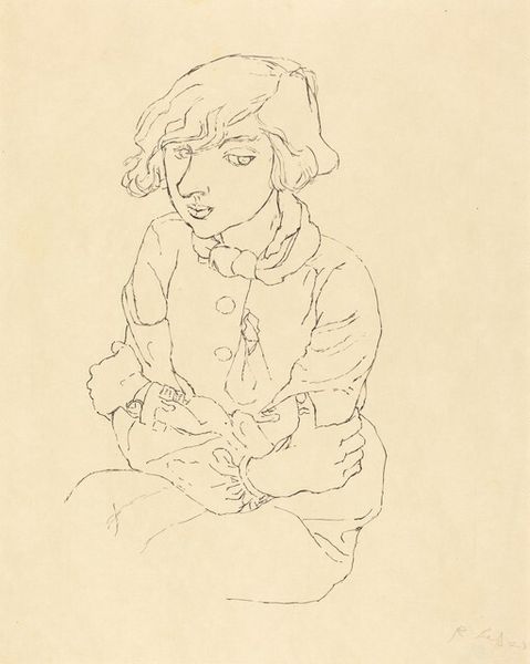 Editor: So, this is Nina Arbore's "Auto-portrait", made with pencil, although we don’t have the exact date. I am really struck by how the details in the dog contrast with the simpler style of the artist herself. What aspects of this drawing stand out to you? Curator: Well, looking at the materials and the process itself, the rough, almost hurried pencil strokes suggest the immediate needs of artistic labor, perhaps constrained by time or resources. Think about the availability of art supplies and the artist's position in society. What might this seemingly simple medium communicate about her access and opportunities? Editor: That's a good point; I hadn't considered that. The choice of pencil almost makes it seem like an everyday act, drawing, and not this formal portrait. Do you think there’s something intentional about blurring the lines between art and daily life? Curator: Exactly! The "everydayness" you mention could be a commentary on women's work often being unseen or devalued. Also, the level of detail she invested into representing the dog compared to herself suggests a keen awareness of status symbols. Who owned such dogs at that time? What did their ownership signify about wealth and leisure? This pushes us to investigate consumption and social hierarchies. Editor: So, the materials and even the subject matter reveal much more about the societal backdrop. The drawing becomes a document of that particular time. Curator: Precisely. By analyzing the labor behind it and the social meaning imbued within its subjects and materiality, we start unraveling complex social narratives embedded within seemingly simple choices. What seemed like just a drawing unveils as something far richer. Editor: This has completely changed how I will approach understanding artworks from now on. Looking beyond just the subject to the choices and possibilities of creation. Thank you! Curator: And thank you! Looking closely together unveils layers of art making.