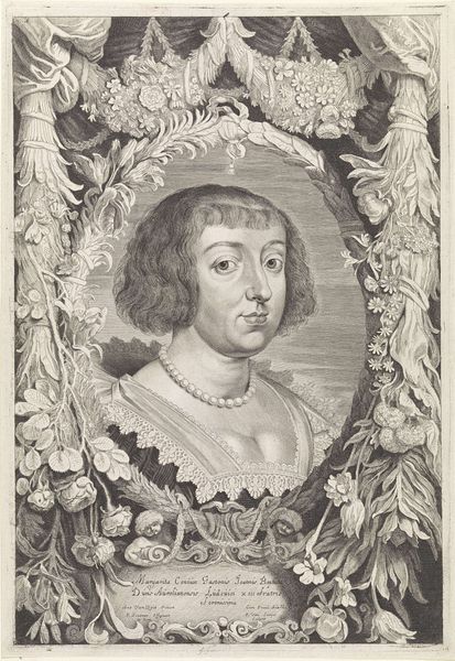 Wenceslaus Hollar made this etching of a woman with a stiff lace collar in 1645. The portrait bust, framed by a circle, displays the subject's elaborate collar in minute detail, signaling status and wealth. The artwork was produced in the Dutch Golden Age, a period marked by unprecedented economic growth and global trade. As Dutch merchants amassed fortunes, they commissioned art that reflected their prosperity and social standing. Hollar, a Bohemian engraver active in the Netherlands and England, was known for his precise and detailed depictions of costumes. The image creates meaning through the visual codes of dress, reflecting the cultural values of wealth and status in Dutch society. Analyzing works such as this one involves researching historical records, costume history, and the socio-economic conditions of the time. Through this research, we gain insight into the social structures and cultural values that shaped artistic production in the Dutch Golden Age.