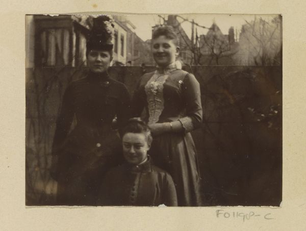 This photograph of Gesiena and Cato Piek with their mother, Lucia Wilhelmina Piek-Jolles, was taken by Johanna Margaretha Piek. The sepia tones suggest an earlier mode of photographic production, perhaps using albumen or similar early processes. The photograph's material properties – its surface texture, its susceptibility to fading, and its small scale, all influence our perception of it. The laborious process of early photography contrasts with contemporary digital methods, highlighting a shift in image production and consumption. The photograph acts as a social document, reflecting the cultural values and aesthetics of its time. The subjects' attire indicates their social standing, while the carefully arranged composition speaks to the formality of the occasion. Photography, since its invention, has democratized portraiture, making it accessible to a broader segment of society, but it’s also labor intensive in itself. By considering the materials, techniques, and context of this photograph, we gain a richer understanding of its cultural and social significance, connecting it to broader histories of creative practices and aesthetics.
