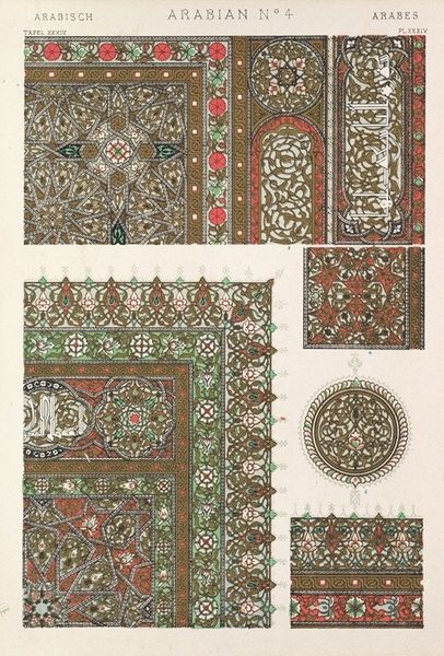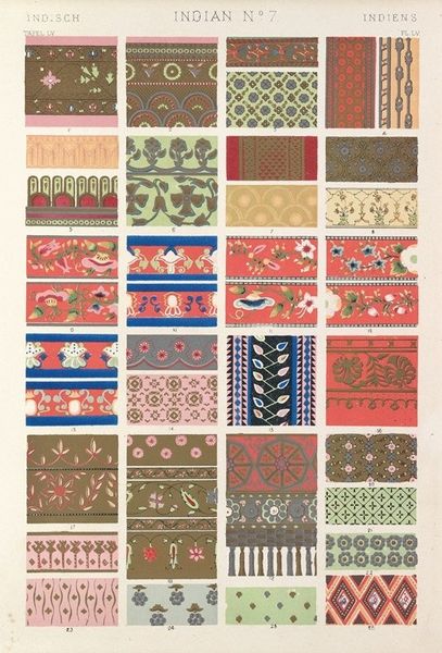 Editor: This is "Indian No. 5a," a drawing by Owen Jones from 1856, and it looks like it was designed for textiles. There's something so calming about these repeating patterns and muted colors. What strikes you most when you look at it? Curator: I'm immediately drawn to the visual language used here. Consider the paisley motif, its curving form echoing the shape of the seed, a symbol of fertility and new beginnings. This speaks to the enduring power of nature and the cycles of life that are so central to many cultures. Do you notice how that shape repeats, almost like a mantra? Editor: I do. It's almost hypnotic. And that central panel... is that a peacock? Curator: Precisely. In many Eastern traditions, the peacock symbolizes beauty, royalty, and even immortality. By incorporating this bird, Jones is not merely creating a decorative design, but also weaving a tapestry of symbolic meanings, drawing upon a rich cultural heritage. What do you think that heritage is doing in 19th century Europe? Editor: It makes me wonder if viewers would have picked up on those symbols back then. Or would it have just been seen as an exotic design? Curator: That's the crux of it. It invites us to consider Orientalism and its role in shaping Western perceptions of the East. The work serves as a conduit for cultural exchange, however mediated, revealing what was valued and understood—or misunderstood—at the time. Editor: So much to think about, beyond just pretty patterns. It's fascinating to see how even seemingly simple designs can carry so much cultural weight. Curator: Indeed. By understanding the visual symbols within a work, we unlock layers of meaning that connect us to the past, and shed light on our present.