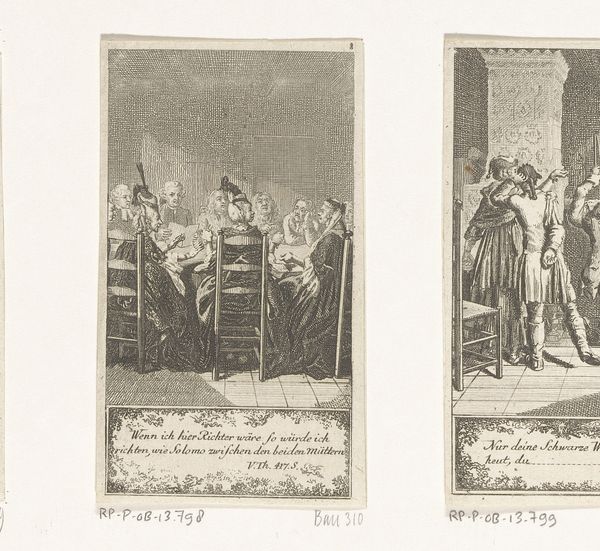 Art Historian: Editor: So, here we have “Vrouw van Pastor Gros op haar doodsbed” by Daniel Nikolaus Chodowiecki, created in 1776. It's an engraving. It seems to depict a scene surrounding a deathbed. I’m struck by the detail considering its small scale. How do you interpret this work? Art Historian: As a materialist, I'm drawn to understanding this print through its production. Engravings like this were part of a vast print culture in the 18th century. Chodowiecki, in essence, was mass-producing images. Think about that labor: the physical act of carving into the metal plate, the press mechanics, the distribution networks. These processes democratized art, disseminating ideas to a wider audience, but also subjected artistic expression to the demands of the market. What can this say about depictions of death within middle class families? Editor: That's interesting! I hadn’t thought about the printmaking process as a form of labour itself, like craftwork in a way. Were these images consumed as purely sentimental pieces or did they function as something more, perhaps instructive or even… political? Art Historian: Exactly! These images were part of a complex system of social communication. Think about the rising middle class in that period, what do they value, and how do they signal belonging to it? Perhaps prints such as these reinforced particular moral values surrounding family, piety, and the acceptance of death, that solidified social identity. Consider who would commission or purchase prints of such scenes, and the ways in which this drove its production? Editor: So, it's not just a snapshot of a historical moment but also a reflection of the values and anxieties of the people who consumed it, right? Seeing it as part of this 'vast print culture' makes me reconsider how ‘art’ was viewed then. Art Historian: Precisely. The means of production shaped the message itself, and tells us of an artform which transcends established boundaries and engages in material practice. That's where the true value lies in works such as these.