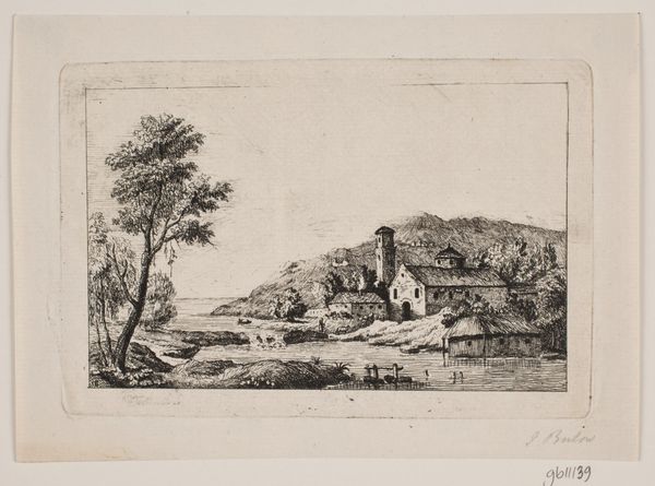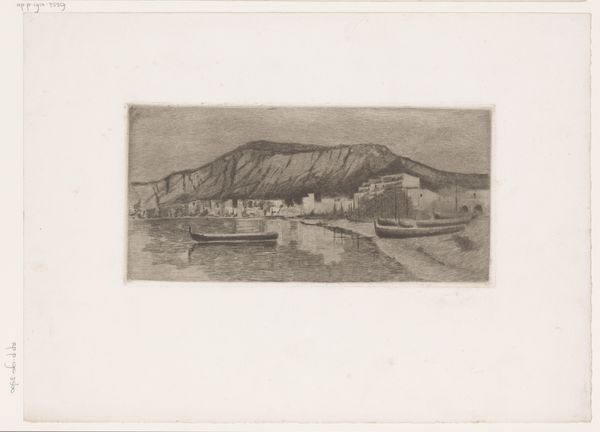 Editor: We're looking at "View of Balaklava on the Black Sea, August 25, 1837," a print made around 1841 by Auguste Raffet, currently housed at the Rijksmuseum. There’s almost a dream-like quality to it; the details are so precise, but the soft greyscale tones give it a sense of remove. What catches your eye in this piece? Curator: The way Raffet balances meticulous observation with a Romantic sensibility gets me every time. It feels like peering into a memory, doesn’t it? He captures the bustling life of Balaklava—the people, the architecture nestled into the landscape—but infuses it with a gentle stillness. It’s not just a record; it’s a feeling. I find myself wondering, what stories do you imagine unfolding here, between the villagers and the ancient ruins in the hills? Editor: I suppose I was so caught up in the overall aesthetic that I didn’t consider a narrative element. I see the everyday, but not necessarily any specific story. Are the figures as generic as they seem? Curator: Not entirely. There's a tension between the precision of the engraving and the suggestive, almost ethereal rendering of the figures. They’re individual, yet archetypal. Raffet isn’t giving us portraits; he’s evoking a community, hinting at lives lived against the backdrop of history. What about the composition? The placement of those figures along the road. Does that placement mean anything to you? Editor: They almost form a bridge, connecting the foreground to the distant vista... I see a way of tying this moment to both history and to the vast world beyond, like figures in a grand play or pageant of world history. Thanks! Curator: Precisely! And, like that, we see the layers start to reveal themselves, bit by bit. Art holds endless new views when seen in a new light.
