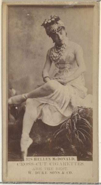This is 'West,' a photographic print made by Allen and Ginter for Virginia Brights Cigarettes. It’s part of a series called 'Actors and Actresses,' reflecting the growing celebrity culture of the late 19th century in the United States. These cards were distributed with cigarette packs, using popular figures to promote smoking. It's a fascinating example of how commercial interests co-opted the burgeoning entertainment industry. Actresses like West gained visibility, but within a framework that prioritized consumerism. The image's visual codes – her costume, pose, and the exotic backdrop – create an alluring spectacle. Understanding this image requires exploring the cultural norms around entertainment, advertising, and gender roles of the time. We can consult theater programs, advertisements, and social commentaries to unpack its meaning. Ultimately, 'West' reminds us that art and popular culture are always embedded in specific social and institutional contexts.