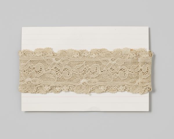 Editor: This is "Tussenzetsel van witte kant met floraal motief," or "Insertion of white lace with floral motif," dating from around 1920. It's a textile piece, part of the Rijksmuseum's collection. It feels so delicate and almost ephemeral. How do you read this artwork? Curator: From a materialist perspective, the labor involved in creating this lace is paramount. Think of the anonymous makers, the time spent, and the skill required to produce such intricate work. Consider its original function, likely adorning clothing or household linens of a certain class. Editor: It does make you think about who made it, not just who wore it! Was lacemaking a common profession? Curator: Precisely. It was a cottage industry for many, especially women. The floral motif, though seemingly decorative, also speaks to a connection with nature, perhaps reflecting the lives and environments of the lacemakers. Think of the raw materials, the thread itself, and where that originated. Editor: So it's not just about the pretty pattern, but the entire production chain. It almost elevates craft to fine art by considering its context. Curator: Exactly! It challenges the traditional hierarchy. What does it mean that this object survives in a museum today? How does its meaning shift when we remove it from its initial context of use and place it in an institution of art? Editor: That's a great point, removing it from its original use really changes the viewer’s focus. Curator: Ultimately, this piece prompts us to consider the social and economic forces intertwined with the production and consumption of even the most seemingly simple and beautiful objects. I find that really rewarding, don't you? Editor: Absolutely, seeing the lace as more than just pretty patterns but as a marker of labor and social class adds a completely new layer of appreciation!