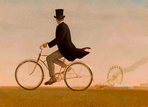 Ken Danby made "Towards the Hill" with watercolor, a medium often associated with amateur art because it’s affordable, portable, and relatively easy to learn. However, here, Danby displays extraordinary virtuosity. Look closely at the granular texture of the dirt road, achieved through meticulous layering and dry-brush techniques. It's a painstaking process demanding control and precision, far removed from the spontaneous washes we typically associate with watercolor. The realism is heightened by the figure's anonymity. We see only the back of a cyclist, clad in denim and leather, ascending the hill. The use of commonplace materials and attire connects the image to everyday life. The artist elevates a mundane scene to a level of high detail, requiring intense labor and skill. The painting challenges hierarchies within the art world, suggesting that the distinction between fine art and craft lies not in the medium, but in the artist's mastery and vision.