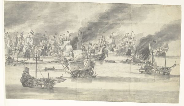 This drawing of sailing ships was rendered by John Greenwood. Note the prominent display of ships, symbols of power, exploration, and commerce, deeply rooted in the psyche of maritime nations. The ships in Greenwood's drawing, with their towering masts and billowing sails, connect to a rich visual history. Think of ancient Roman galleys, or Viking longboats - all vessels of transit, conquest, and exchange. These ships, then and now, transcend mere transport; they embody ambition, risk, and the human drive to overcome the limits of our terrestrial existence. The smoke belching from the cannons is reminiscent of both the glory of victory and the somberness of war. This duality reminds us of the precarious nature of progress, and the cyclical nature of history, as these symbols echo and morph, reminding us of what has been and what may come again.