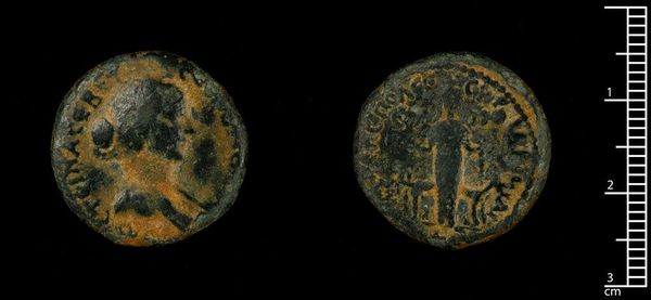 Curator: This copper coin, a later imitation of a Follis of Herakleios, was crafted in Baalbek during the Umayyad dynasty, carrying a weight of approximately 4.33 grams. It looks incredibly worn. Editor: It certainly does. At first glance, it evokes a feeling of resilience, given its age and visible wear, yet the design hints at the power dynamics at play during its creation. Curator: Precisely. Examining this coin within its socio-political context, we see how Abd-al-Malik, as caliph, utilized existing Byzantine currency designs, subtly adapting them to reflect the shift in power and the rising Islamic influence. Editor: The act of imitation itself speaks volumes. Who is being represented, who is being excluded? It opens up broader questions of cultural appropriation and the construction of identity in the wake of conquest. Curator: Absolutely. The coin’s imagery, while drawing on Herakleios’ iconography, also marked a visual shift towards the Umayyad dynasty's own brand of authority. Editor: Such a small object, and yet it presents layers of narratives about power, identity, and cultural exchange that continue to resonate today. Curator: It’s fascinating to consider how this small piece circulated, influencing perceptions and normalizing a new political reality. Editor: It truly highlights how art can act as a quiet, yet impactful agent of change.