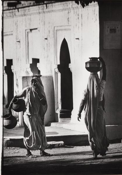 Michael Ackerman made this gelatin silver print, Benares, India, with photography, seemingly as a way to grab at something fleeting. It's like a memory, not quite in focus. The grayscale is gorgeous, with blacks that seem to absorb light and whites that glow, despite the palpable grit and graininess. Look at the person on the left, the way the eyes are so sharp, yet everything else is swallowed by the shadows. The texture is palpable, almost like you could reach out and feel the rough stone. There's a tension between the clarity of the gaze and the blur of movement, which gives the picture its strange energy. Ackerman makes me think a little of Daido Moriyama, with his high-contrast, grainy, street photography. But where Moriyama is all about the surface, Ackerman seems to be digging for something deeper, something more human. Ultimately, it's not about the place, but about the feeling, the sense of being lost and found at the same time.