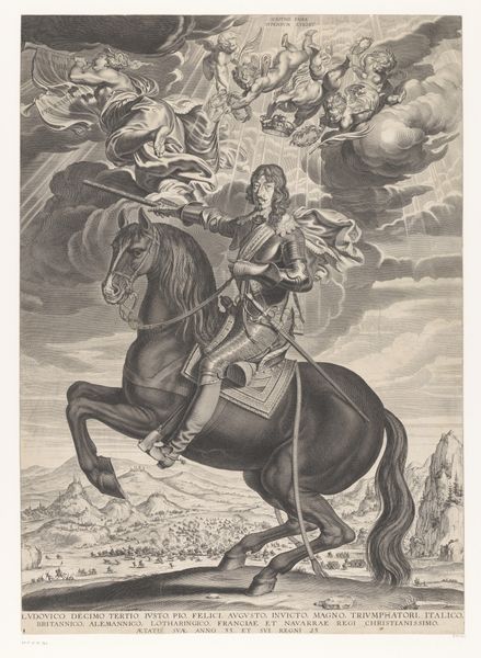 Michel Lasne created this print of Bernard de Foix de la Valette, Duke of Epernon, sometime in the first half of the 17th century. Equestrian portraits like this one were common in Europe, particularly in France. Lasne's print is a carefully constructed image of power. Bernard de Foix de la Valette is shown in armor, on horseback, and accompanied by allegorical figures from mythology. Light radiates down on him, as if to suggest divine approval. We might ask what social purpose such an image served at the time it was made. Was it intended to project power and authority? Does it invite the viewer to worship or obey the Duke? To explore these questions we might turn to primary source documents, such as letters, diaries, and administrative records, to better understand the social and institutional forces that shaped both the production and the reception of this print.