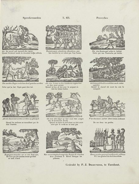 This print, made in Amsterdam by Erven de Weduwe Jacobus van Egmont, presents "Details from the Indies." It’s a series of vignettes offering a European audience a glimpse into the Dutch East Indies. These images tell us about the complex social and political environment of the Dutch Golden Age. As the Dutch East India Company expanded its reach, images like these played a crucial role in shaping European perceptions of the East. The scenes depict both the exotic and the exploitative, revealing the intersection of trade, natural history, and colonial power. Notice the detailed rendering of local flora and fauna alongside scenes of labor and trade. The institutional history here is key: the Dutch East India Company was not merely a commercial enterprise, but a quasi-governmental entity with the power to wage war, coin money, and colonize territories. To understand this image fully, we can turn to the archives of the Dutch East India Company, travel narratives, and studies of colonial visual culture. These resources help us understand how art reflects and shapes the social structures of its time.