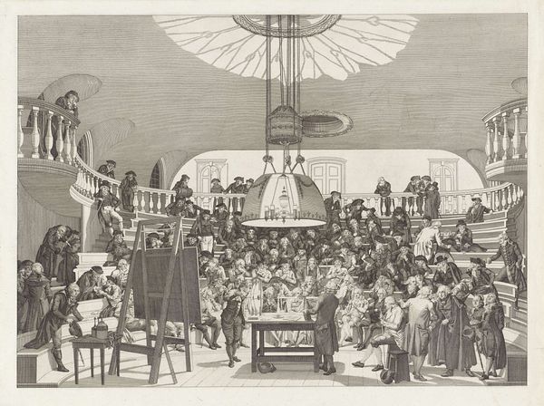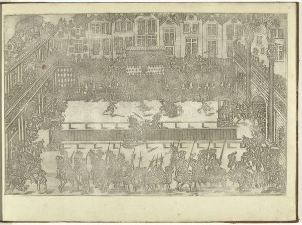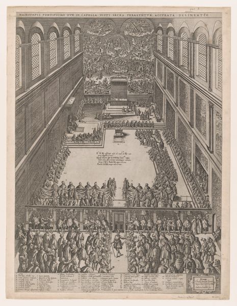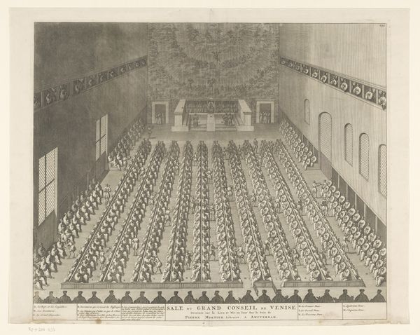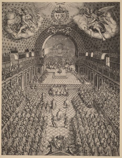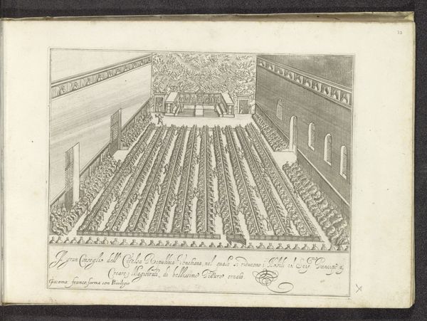 Editor: Okay, so this print is called "Le Fontane del Giardino Estense in Tivoli con li Loro Prospetti, e Vedute della Cascata del Fiume Aniene," made in 1691 by Giovanni Francesco Venturini. It's an engraving of a garden, held at The Met. I’m struck by how meticulously everything is rendered; almost dreamlike with detail, but the mood feels very formal. What do you make of this piece? Curator: Oh, it's like stepping into a perfectly staged Baroque play, isn’t it? Imagine the echoes of fountains mingling with the murmur of conversation and rustling leaves. The architecture is quite imposing as are the meticulously placed plants and the tiny figures within it all. For me, there's this delicate balance between the human attempt to control nature, to formalize and design it, with nature's own unruly wildness. It seems very much in line with the Renaissance project of re-shaping and studying nature, what do you think about this contrast? Editor: I can see that. There's the architecture as opposed to the garden itself, where they attempt to 'domesticate' nature and create a certain order that isn't quite natural. I didn’t necessarily notice that contrast before! Curator: Yes! And there’s a theatrical element, with the viewer placed at the foot of the "stage", the gardens presented to us almost as if to provoke some type of emotion… Think about the grand avenues in Versailles, those were designed to inspire Awe in its visitors, and reinforce the political control, too. What do you get from these compositions? Editor: I hadn't really thought about how orchestrated those landscape designs are, either from Venturini's perspective, or from that of landscape artists elsewhere. Now I want to explore other artists that rendered architectural landscape in the same period. Thanks for sharing your thoughts. Curator: My pleasure! It’s these little time portals that make art history such a joy, don't you think?