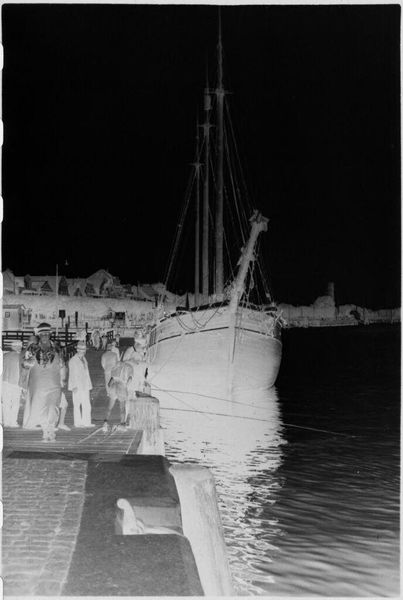 Editor: This is a rather small gelatin silver print, titled "Boats in Lübeck," attributed to Laurence Feininger. It's quite striking, the high contrast makes it feel almost like a dream. What jumps out at you? Curator: I'm drawn to the means of production here. Gelatin silver prints were a common, accessible technology. This small size suggests mass consumption, perhaps a souvenir. Editor: A souvenir? That's interesting! How does that affect our interpretation? Curator: It positions the image within a system of tourism and commodification, the boats becoming objects to be possessed and consumed visually. The labor involved in their construction is obscured. What do you think about that? Editor: I hadn't considered the tourist aspect. It really changes how I see the image. Thanks! Curator: Precisely! Examining the material and social context offers a deeper understanding of the image's function beyond its aesthetic qualities.