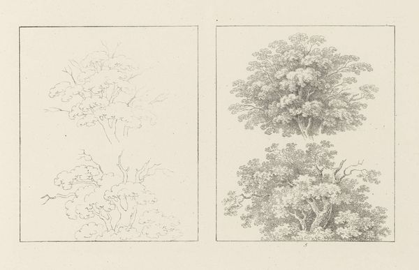 Max Josef Wagenbauer made this album leaf depicting two spruce trees. On the left, we see the initial design, a delicate sketch in graphite. To the right, the execution, realized with a refined use of ink. Wagenbauer's work is rooted in the meticulous process of drawing. The album leaf is carefully rendered. The texture of the needles is achieved through fine lines. The weight of the branches, the form of the trunk, all are imbued with a sense of naturalism. In his systematic approach, Wagenbauer embraces both art and craft. The design phase allows for planning. The execution phase is for precision and control. The result is a study of nature which reflects the labor and skill of the artist. This challenges any distinction between fine art and craft. Ultimately, Wagenbauer's album leaf reminds us that understanding the materials and processes behind an artwork is key to unlocking its full meaning.