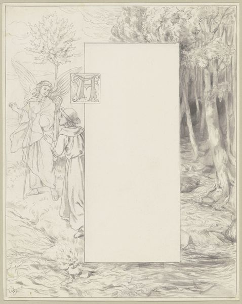 Wilhelm Steinhausen, born in 1846, created this drawing titled "Diether," which now resides in the Städel Museum. In this piece, the artist illustrates a scene of spiritual guidance, rendered with delicate precision. On the left, an angel extends a hand to a figure, while on the right, the dark forest seems to hint at a journey or passage. It evokes an emotional response tied to themes of faith and human vulnerability. Steinhausen was working in Germany during a time of great social change. The choice of biblical imagery offers a narrative about religious and moral identity. The drawing subtly reflects a cultural moment grappling with questions of faith, morality, and the search for meaning in a rapidly changing world. It is both a personal exploration of faith and a reflection on the cultural narratives that shape our understanding of ourselves and our place in the world.
