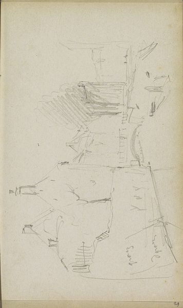 Adrianus Eversen made this drawing, "Landschap met een molen," sometime in the 19th century. At first glance, this appears to be a simple landscape sketch, but it actually reflects a period of significant cultural and economic change in the Netherlands. Eversen, working in the Romantic tradition, often depicted scenes that evoked a sense of nostalgia for a pre-industrial past. Windmills, like the one sketched here, were not just functional structures but powerful symbols of Dutch identity and resilience. They speak to a time when local industry and agriculture were deeply intertwined with the landscape. As the Netherlands industrialized, these images of rural life became increasingly poignant, representing a disappearing way of life. This sketch invites us to reflect on our own relationship with technology and progress, and the ways in which we memorialize or romanticize the past. It’s a reminder that landscapes are not just physical spaces but are imbued with cultural meaning and historical memory.