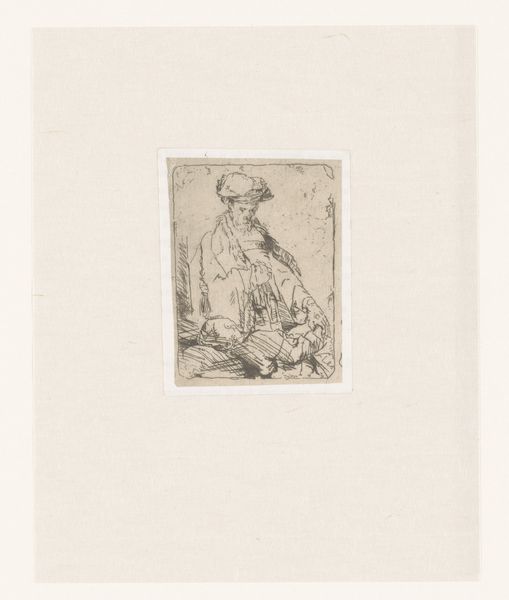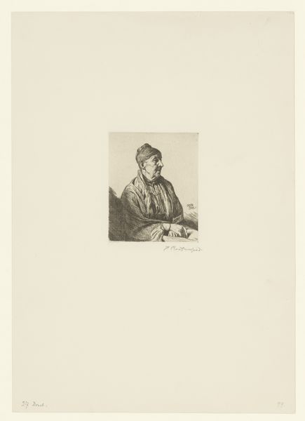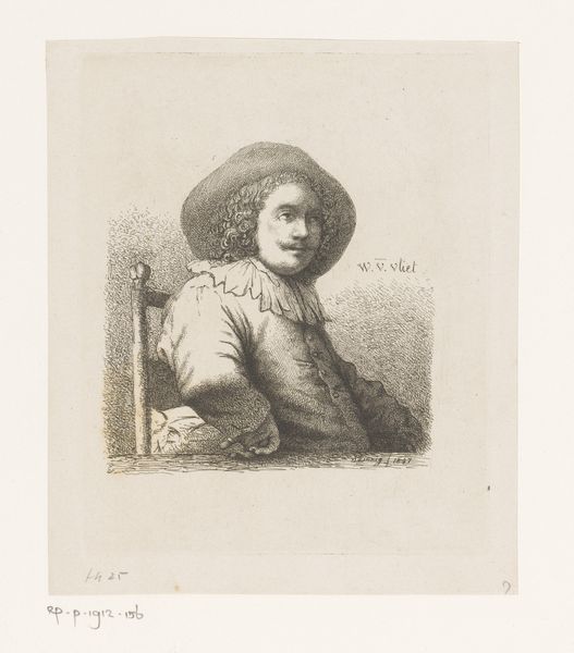 James Bretherton made this print, "Young Man in a Velvet Cap," in the late 18th century. This etching depicts a man who is likely a member of the burgeoning middle class, set against a sketchy background. In Bretherton's England, art academies played an increasingly important role, codifying artistic techniques and promoting certain styles. Printmaking, however, remained somewhat outside this institutional framework, offering artists like Bretherton a space for experimentation and perhaps a more direct connection to the market. The velvet cap and patterned shawl suggest a certain level of economic comfort, reflecting the shifting social landscape where merchants and professionals gained prominence. To fully appreciate this work, consider the publishing and print-selling networks of the time, and the emerging culture of collecting. Research into period fashion and social history would further enrich our understanding, revealing how art both reflected and shaped the evolving identity of the British middle class.