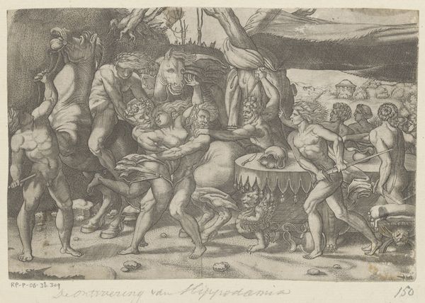 This engraving, "Fortune Does Not Watch over All Sleepers," was made by Dirck Volckertsz Coornhert, sometime before 1590. The image is incised into a metal plate, likely copper, with astonishing precision. Look closely, and you can see how the varying depths and densities of the lines create a rich range of tones, almost like a grayscale photograph. This was achieved through careful application of tools like burins and scrapers. These tools allowed Coornhert to physically cut away tiny pieces of metal, thus defining the composition. The subject matter, a personification of Fortune ignoring a sleeping man, relates to the burgeoning mercantile culture of the Dutch Golden Age. It reminds viewers that prosperity isn't guaranteed, and that hard work is necessary for success. The print would have been relatively inexpensive, allowing for broad distribution and moral instruction. The image is a testament to the engraver's skill, and to the power of printmaking as a means of disseminating ideas and values. It is a stark reminder that craft and commerce are often intertwined.