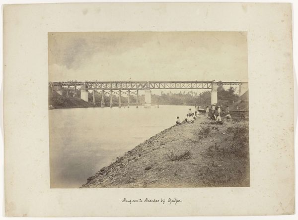 This is an anonymous photograph of an ironwood railway bridge over the Enim River. The way the image is composed makes me think about the anonymous maker's process, about the choices they made in capturing this particular view. I'm drawn to the textures. The rough, hewn timber of the bridge supports contrasts so much with the delicate foliage and the smooth, reflective water. Then there’s the bridge structure itself, a crisscross of ironwood, a perfect geometry, slicing across the wildness. Look how this creates a strong diagonal, which takes the eye on a journey from the bottom left to the top right of the image. It feels like a conversation between industry and nature. It reminds me a little bit of some of the New Topographics photographers, like Robert Adams. It speaks to the way that photography invites us to find beauty and meaning in unexpected places. Ultimately, what does this mean? Well, it's up to you to decide.