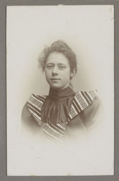 Portret van een jonge vrouw met een col en een geplooide jurk c. 1882 - 1910