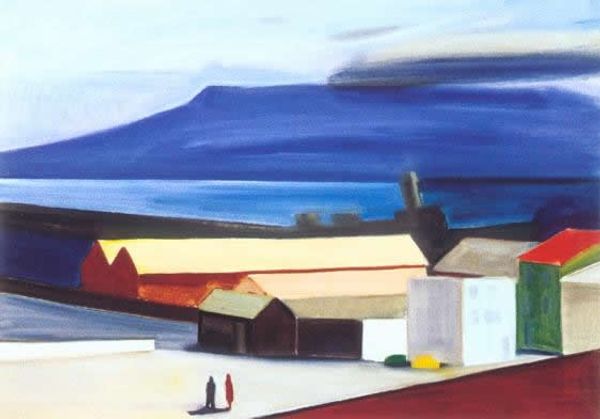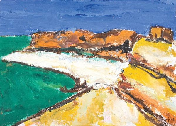 Ion Pacea painted this 'House by the Sea' with bold strokes of color. The thick impasto suggests oil paint, applied with evident enthusiasm. Pacea's choice of this medium is significant. Unlike the smooth, refined surfaces often associated with academic painting, oil allows for a tactile, expressive approach. Look closely at the surface – you can almost feel the energy of the artist's hand as he built up layers of pigment. This directness aligns Pacea with a lineage of artists who prioritize process over polish, emphasizing the inherent qualities of the material and the act of making itself. The resulting texture, weight, and form all contribute to the artwork’s visual impact, reflecting a deep engagement with the traditions of painting, alongside a contemporary sensibility. Ultimately, Pacea's painting reminds us that art is not just about the image it represents, but also about the materials, the making, and the context in which it was created.