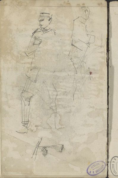 George Hendrik Breitner made this page of figure studies in pencil on paper. It’s a quick, unassuming medium, readily available and easily portable. But even in these casual sketches, we can see the hand of a skilled artist at work. Breitner is clearly interested in capturing the human form, the way the body occupies space and interacts with its environment. Note the swiftness of the marks, the way the pencil glides across the page, capturing the essence of each figure with minimal effort. The artist doesn't fuss over details, he focuses on capturing the overall impression, the gesture, and the movement. This approach reflects a broader trend in art at the time, a shift away from idealized representations towards a more realistic and immediate portrayal of everyday life. There’s a real sense of labor here. And although it may not be immediately obvious, this humble page of sketches speaks to the value of artistic skill and the importance of observation in understanding the world around us. It reminds us that art isn't always about grand statements or elaborate techniques, but about the simple act of seeing and recording.