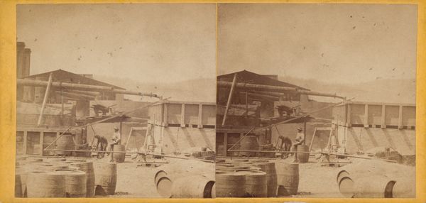 Robert Howlett created this photograph, "Aphrodita Under Construction," using the wet collodion process. The eye is immediately drawn to the skeletal form of the ship, a massive, dark shape propped up by a forest of timber supports. This creates a striking contrast between the organic curve of the vessel and the rigid geometry of its scaffolding, all rendered in sepia tones. Howlett uses sharp focus to emphasize the textures of wood and the complex interplay of lines, highlighting the construction process. The unfinished ship, named after the Greek goddess of love and beauty, suggests a kind of birth, an emergence from raw materials into a structured form. This raw and unfinished state prompts us to consider the ship as a signifier of potential, progress, and the intersection of nature and industry. The photograph's composition invites us to reflect on how meaning is constructed through form, challenging our perception of beauty and functionality. This piece emphasizes that what we see as art is perpetually open to interpretation, shaped by our historical and cultural perspectives.