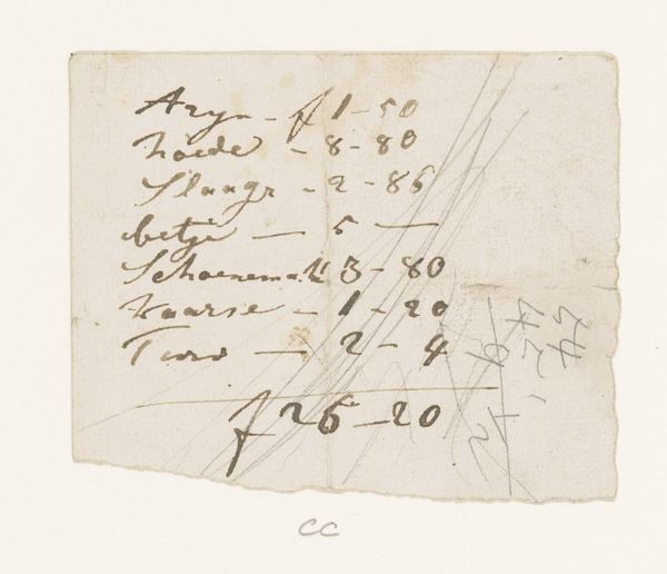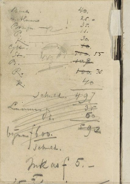 This drawing, likely made around the late 18th or early 19th century by Simon Andreas Krausz, presents us with an intriguing juxtaposition. A seemingly mundane inscription with numerical annotations fills the sheet, but beneath the surface, we find something deeper. The act of writing itself, the formation of letters and symbols, becomes a potent motif. Consider how the simple stroke of a pen can carry the weight of commerce, memory, and cultural transmission. These inscriptions, at first glance mere accounting, remind us of the power of record-keeping—a practice that stretches back to ancient civilizations, from cuneiform tablets to medieval manuscripts. In each instance, the written word serves not only as a practical tool but as a repository of human experience. This drawing prompts us to reflect on the cyclical nature of symbols. The shapes, the forms, the impulse to record—these elements reappear throughout history, evolving and adapting to new contexts while retaining a connection to our collective past. The numbers and words, seemingly straightforward, resonate with the echoes of countless human transactions, a testament to the enduring power of communication.