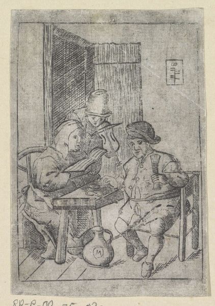 This is Jacob Gole's etching "Herbergscène met rokende boeren," or "Tavern Scene with Smoking Peasants," made in the Netherlands, sometime between 1670 and 1724. It depicts a group of peasants drinking and smoking in a tavern. The print provides a glimpse into the social life of the lower classes in the Dutch Republic, which was a major economic and cultural power at the time. The Dutch Golden Age, as it was known, saw a rise in the production and consumption of luxury goods, including art. Prints like this one were often made for a middle-class audience who were interested in seeing images of everyday life. However, it is important to remember that this image is not necessarily a realistic depiction of peasant life. It is likely that Gole, who came from a relatively well-off background, had a somewhat romanticized view of the lower classes. To fully understand this print, we can consult a wide range of sources, from historical documents to other works of art from the period. By doing so, we can gain a deeper understanding of the complex social and cultural forces that shaped the Dutch Golden Age.