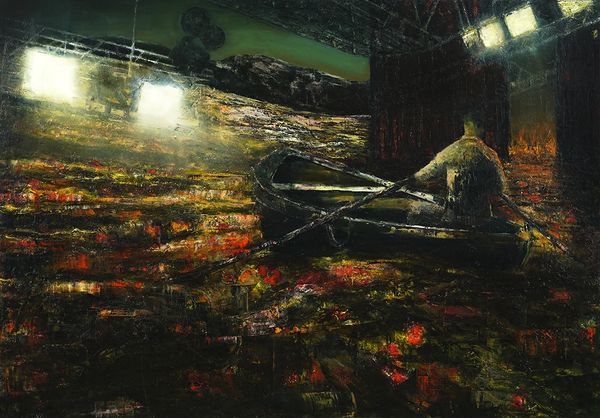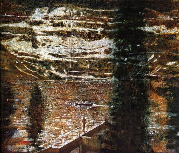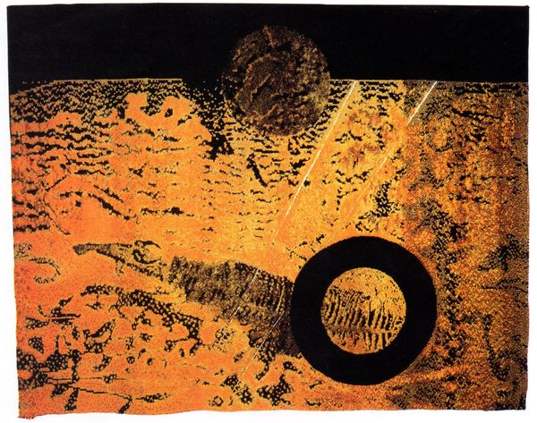 Richard Oelze painted 'Mit der Zufalligen Familie' with oil on canvas, conjuring a world of ambiguous forms. Within this dreamscape, we discern suggestions of faces and bodies, emerging from the earth like ancient relics, symbols of origin. Notice the way Oelze uses the earth itself as a canvas for faces, akin to the ancient practice of carving visages into mountainsides, a tradition stretching back to the dawn of civilization. The impulse to see faces, to project human forms onto the inanimate world, is deeply rooted in our psyche. Consider, for instance, the Old Man of the Mountain, a natural rock formation in New Hampshire, which resembled a human face. It became a potent symbol, embodying endurance and resilience. Our tendency to seek out patterns and faces reflects a primal need to connect with our environment and one another, and Oelze taps into this subconscious desire, presenting us with a world where the boundary between the human and the natural blurs.