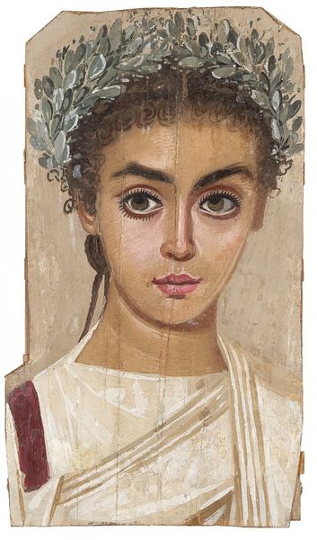This is the "Mummy Portrait of a Boy," a painting on wood panel from Roman Egypt. The portrait is dominated by the boy's face, painted with a direct gaze. The artist used light and shadow to model the face, creating a sense of three-dimensionality, while linear brushstrokes define the planes of the face. The composition centres on symmetry, with a vertical alignment of the nose and mouth. The focal point is undeniably the eyes, which are large, dark, and intensely expressive, drawing viewers into an intimate encounter. The dark necklace provides a formal counterpoint to the bright robe. The rendering of the hair, with two dark curls above the forehead, breaks the symmetry, drawing attention to the subject's individuality. The use of encaustic—mixing pigment with hot wax—gives the surface a unique texture and depth. This is more than a depiction; it is a complex statement about identity and the mediation between life and death.